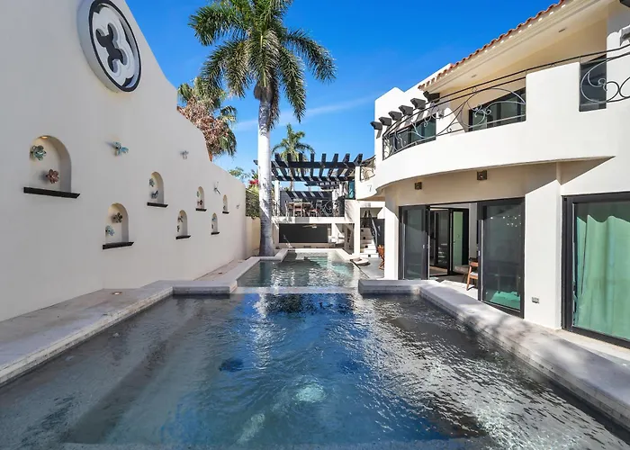 Guests will find Playa El Medano Beach 2.4 miles from this Cabo San Lucas villa, and the 25 acre working Flora Farms is 3.7 miles away.